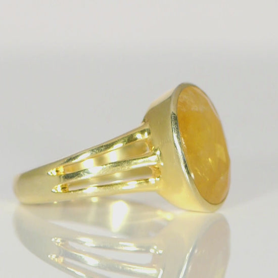 Astrological Yellow Sapphire Silver Plated Ring